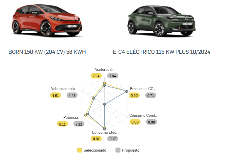 La ejecución ha resultado en un comparador que permite cotejar de forma clara y estructurada diferentes modelos de vehículos de modo que facilite la toma de decisiones informadas.
